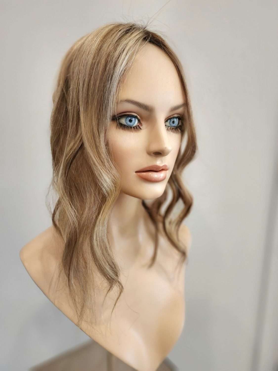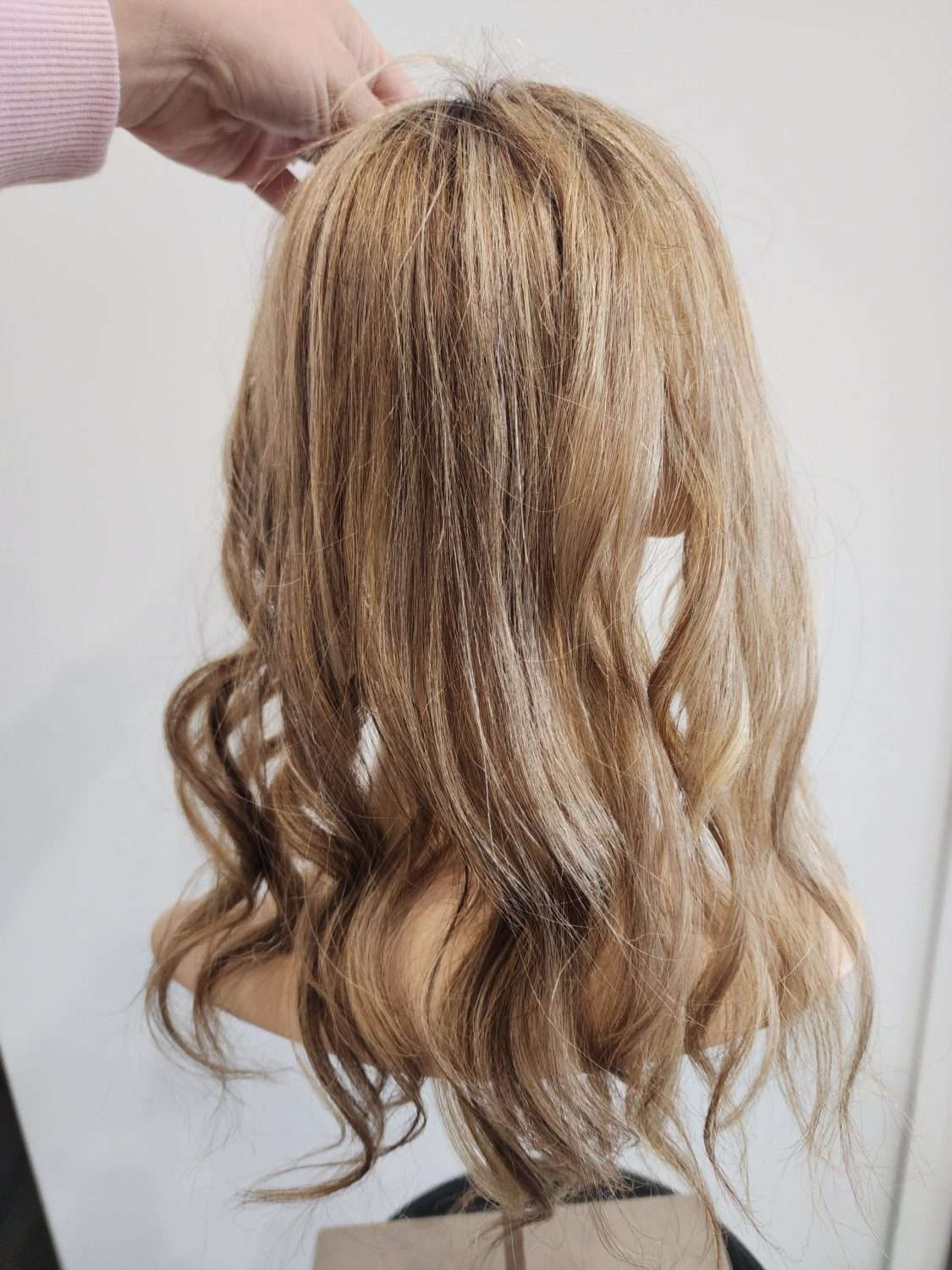 | Color : | Brown with warm blonde highlights, brown regrowth |